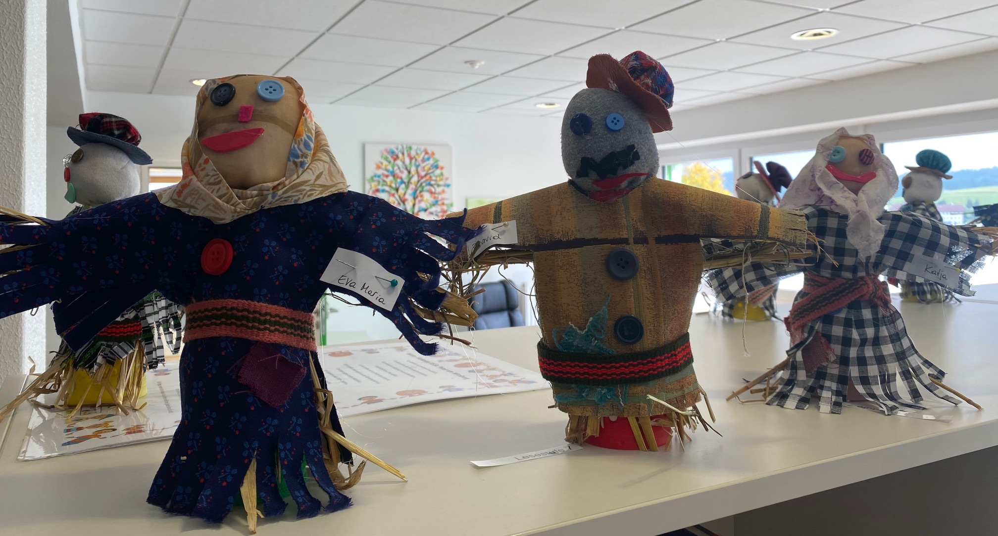 Die 4.Klassen basteln Vogelscheuchen